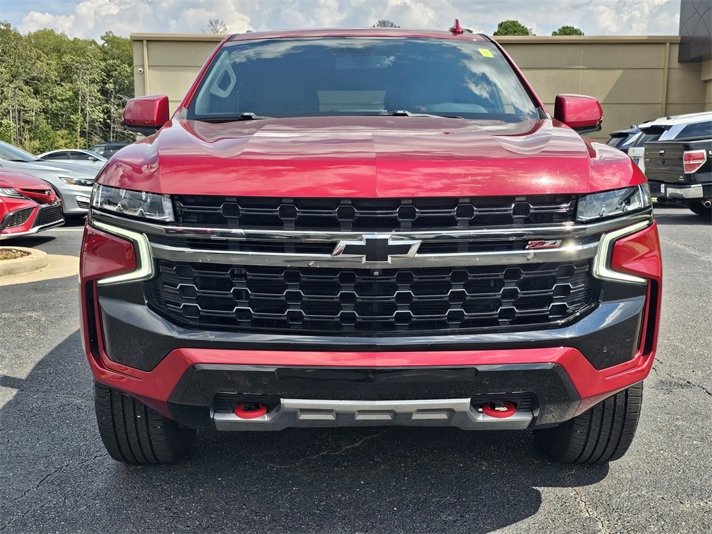 This 2022 Chevrolet Tahoe Z71 in Cherry Red Tintcoat features: 10-Way Power Driver & Passenger Seat Adjusters, 1st & 2nd Row Color-Keyed Carpeted Floor Mats, 2-Speed Active Electronic AutoTrac Transfer Case, 2nd Row Pwr Release 60/40 Split-Folding Bench Seat, 3.23 Rear Axle Ratio, 3rd Row 60/40 Power-Folding Split-Bench Seat, 3rd row seats: split-bench, 4-Wheel Disc Brakes, 9 Speakers, ABS brakes, Air Conditioning, All-Weather Floor Mats, Alloy wheels, AM/FM radio: SiriusXM with 360L, Apple CarPlay/Android Auto, Auto High-beam Headlights, Auto-Dimming Inside Rear-View Mirror, Auto-dimming Rear-View mirror, Automatic Stop/Start, Automatic temperature control, Black Tubular Assist Steps, Bose 9-Speaker Stereo Audio System Feature, Brake assist, Bright Front & Rear Door Sill Plates, Bumpers: body-color, Color-Keyed Carpeting Floor Covering, Compass, Delay-off headlights, Driver & Front Outboard Passenger Airbags, Driver Alert Package, Driver door bin, Driver vanity mirror, Dual front impact airbags, Dual front side impact airbags, Dual-Pane Power Panoramic Sunroof, Electronic Stability Control, Emergency communication system: OnStar and Chevrolet connected services capable, Enhanced Driver Information Center, Floor Console w/Storage Area, Four wheel independent suspension, Front anti-roll bar, Front Bucket Seats, Front Center Armrest, Front dual zone A/C, Front High-Approach Angle Fascia, Front High-Back Reclining Bucket Seats, Front reading lights, Fully automatic headlights, Garage door transmitter, Hands-Free Rear Power Programmable Liftgate, HD Surround Vision, Heated 2nd Row Outboard Seats, Heated door mirrors, Heated Driver & Front Passenger Seats, Heated front seats, Heated Steering Wheel, Hill Descent Control, Illuminated entry, Infotainment Display, Lane Change Alert w/Side Blind Zone Alert, Leather steering wheel, Leather-Appointed Seat Trim, Leather-Wrapped Steering Wheel, LED Daytime Running Lamps, Low tire pressure warning, Luxury Package, Memory seat, Memory Settings, Memory Settings for Driver, Navigation System, Not Equipped w/Steering Column Lock, Occupant sensing airbag, Outside Heated Power-Adjustable Mirrors, Outside temperature display, Overhead airbag, Overhead console, Panic alarm, Passenger door bin, Passenger vanity mirror, Power door mirrors, Power driver seat, Power Liftgate, Power passenger seat, Power steering, Power Tilt & Telescopic Steering Column, Power windows, Preferred Equipment Group 2Z7, Premium audio system: Chevrolet Infotainment System 3, Premium Smooth Ride Suspension, Radio: Chevrolet Infotainment 3 Premium System, Rain sensing wipers, Rear air conditioning, Rear anti-roll bar, Rear Cross Traffic Alert, Rear Pedestrian Alert, Rear reading lights, Rear seat center armrest, Rear window defroster, Rear window wiper, Red Horizontal-Mounted Recovery Hooks, Remote keyless entry, Remote Start, Roof rack: rails only, Security system, Set of 4 Wheel Locks (LPO), SiriusXM Radio w/360L, Speed control, Speed-sensing steering, Split folding rear seat, Spoiler, Start/Stop System Disable Button, Steering wheel mounted audio controls, Tachometer, Telescoping steering wheel, Tilt steering wheel, Traction control, Trip computer, Universal Home Remote, Variably intermittent wipers, Voltmeter, Wheels: 20" x 9" Machined Aluminum, Wireless Charging.