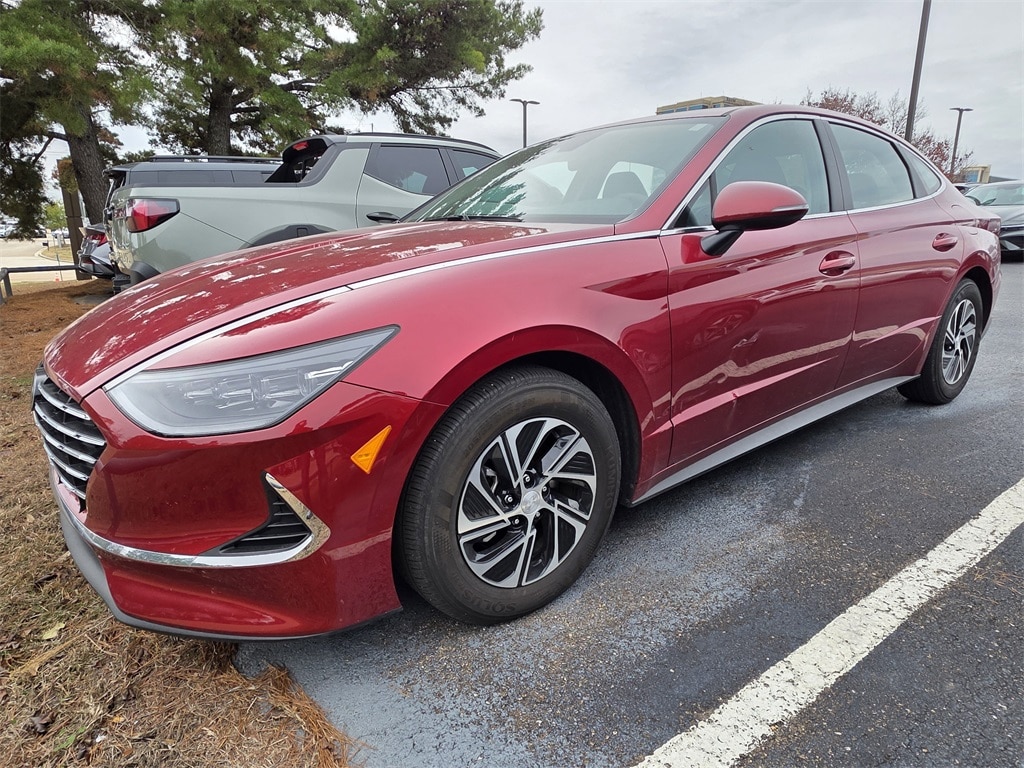 This 2023 Hyundai Sonata Hybrid Blue in Ultimate Red features: 16" x 6.5J Aluminum Alloy Wheels, 4-Wheel Disc Brakes, 6 Speakers, ABS brakes, Air Conditioning, Alloy wheels, AM/FM radio: SiriusXM, Apple CarPlay & Android Auto, Auto High-beam Headlights, Automatic temperature control, Brake assist, Bumpers: body-color, Cargo Block, Cargo Net, Cargo Package, Cargo Side Bins, Carpeted Floor Mats, Delay-off headlights, Driver door bin, Driver vanity mirror, Dual front impact airbags, Dual front side impact airbags, Electronic Stability Control, Emergency communication system: Blue Link Connected Car Service (3-year complimentary subscription), First Aid Kit, Four wheel independent suspension, Front anti-roll bar, Front Bucket Seats, Front Center Armrest, Front dual zone A/C, Front reading lights, Fully automatic headlights, Illuminated entry, Knee airbag, Lane Departure Warning System, Low tire pressure warning, Occupant sensing airbag, Option Group 01, Outside temperature display, Overhead airbag, Overhead console, Panic alarm, Passenger door bin, Passenger vanity mirror, Power door mirrors, Power steering, Power windows, Premium Cloth Seating Surfaces, Radio data system, Radio: AM/FM/SiriusXM/MP3 Display Audio, Rear air conditioning, Rear anti-roll bar, Rear side impact airbag, Rear window defroster, Remote keyless entry, Reversible Cargo Tray, Security system, Speed control, Speed-sensing steering, Speed-Sensitive Wipers, Split folding rear seat, Spoiler, Steering wheel mounted audio controls, Telescoping steering wheel, Tilt steering wheel, Traction control, Trip computer, Turn signal indicator mirrors, Variably intermittent wipers, Wheel Locks.