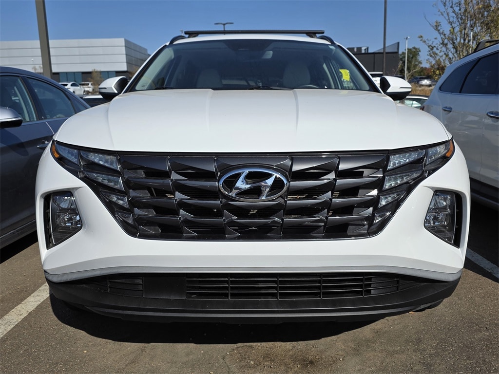 This 2024 Hyundai Tucson SEL in White Pearl features: 10.25" Digital Instrument Cluster, 10.25" Navigation System (AVNT), 3.648 Axle Ratio, 4-Wheel Disc Brakes, 6 Speakers, ABS brakes, Air Conditioning, Alloy wheels, AM/FM radio: SiriusXM, Ambient Interior Lighting, Apple CarPlay & Android Auto, Auto High-beam Headlights, Auto-Dimming Interior Mirror, Automatic temperature control, Brake assist, Bumpers: body-color, Cargo Cover, Cargo Net, Cargo Tray, Carpeted Floor Mats, Convenience Package, Delay-off headlights, Driver door bin, Driver vanity mirror, Dual Automatic Temperature Control, Dual front impact airbags, Dual front side impact airbags, Dynamic Voice Recognition, Electronic Stability Control, Emergency communication system: Blue Link Connected Car Service (3-year complimentary subscription), Exterior Parking Camera Rear, First Aid Kit, Four wheel independent suspension, Front anti-roll bar, Front Bucket Seats, Front Center Armrest, Front dual zone A/C, Front reading lights, Fully automatic headlights, H-Tex Seat Trim, Heated door mirrors, Heated Front Bucket Seats, Heated front seats, Illuminated entry, Leather-Wrapped Shift Knob, Leather-Wrapped Steering Wheel, LED Interior Lights (Room, Map), LED Taillights, Low tire pressure warning, Occupant sensing airbag, Option Group 02, Outside temperature display, Overhead airbag, Overhead console, Panic alarm, Passenger door bin, Passenger vanity mirror, Power door mirrors, Power driver seat, Power Liftgate, Power steering, Power Sunroof, Power windows, Radio data system, Radio: AM/FM/HD Audio System, Radio: AM/FM/HD Audio System (P2), Rear anti-roll bar, Rear seat center armrest, Rear side impact airbag, Rear window defroster, Rear window wiper, Remote keyless entry, Roadside Assistance Kit, Roof Rack Cross Rails, Roof rack: rails only, Security system, Side Mirrors w/Turn Signal Indicators, Speed control, Split folding rear seat, Spoiler, Stain & Odor Resistant Cloth Seat Trim, Steering wheel mounted audio controls, Tachometer, Telescoping steering wheel, Tilt steering wheel, Traction control, Trip computer, Ultrasonic Rear Occupant Alert, Variably intermittent wipers, Wheels: 17" x 7.0J" Alloy, Wheels: 19" x 7.5J" Machine-Face Finish Alloy.