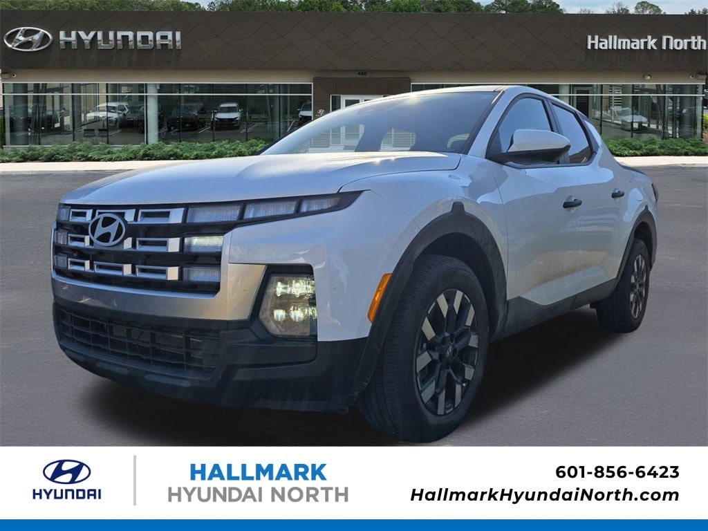 This 2025 Hyundai Santa Cruz SE in Atlas White features: Option Group 01, 18" x 7.5J Alloy Wheels, 4-Wheel Disc Brakes, 4.081 Axle Ratio, 6 Speakers, ABS brakes, Air Conditioning, All Season Fitted Liners, Alloy wheels, AM/FM radio: SiriusXM, Apple CarPlay & Android Auto, Auto High-beam Headlights, Auto-leveling suspension, Bed Cargo Net, Bed Mat, Brake assist, Bumpers: body-color, Compass, Delay-off headlights, Driver door bin, Driver vanity mirror, Dual front impact airbags, Dual front side impact airbags, Electronic Stability Control, Emergency communication system: Bluelink+, Exterior Parking Camera Rear, First Aid Kit, Four wheel independent suspension, Front anti-roll bar, Front Bucket Seats, Front Center Armrest, Front reading lights, Fully automatic headlights, Illuminated entry, Low tire pressure warning, Occupant sensing airbag, Outside temperature display, Overhead airbag, Overhead console, Panic alarm, Passenger door bin, Passenger vanity mirror, Power door mirrors, Power steering, Power windows, Radio data system, Radio: AM/FM/HD Audio System, Rear anti-roll bar, Rear seat center armrest, Rear side impact airbag, Rear step bumper, Rear window defroster, Remote keyless entry, Roadside Assistance Kit, Security system, Speed control, Speed-sensing steering, Split folding rear seat, Spoiler, Stain & Odor Resistant Cloth Seat Trim, Steering wheel mounted audio controls, Tachometer, Telescoping steering wheel, Tilt steering wheel, Traction control, Trip computer, Variably intermittent wipers, Option Group 01.